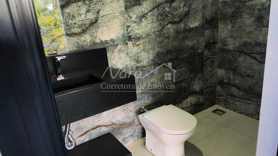Bancadas: Cozinha em Quartzo e banheiros finalizados em Quartzo Calacatta Venato, elevando o padrão estético dos ambientes.