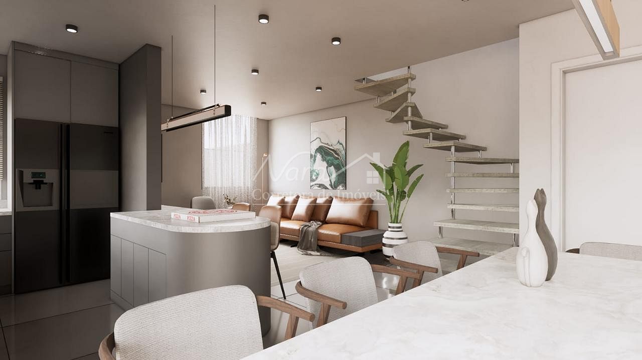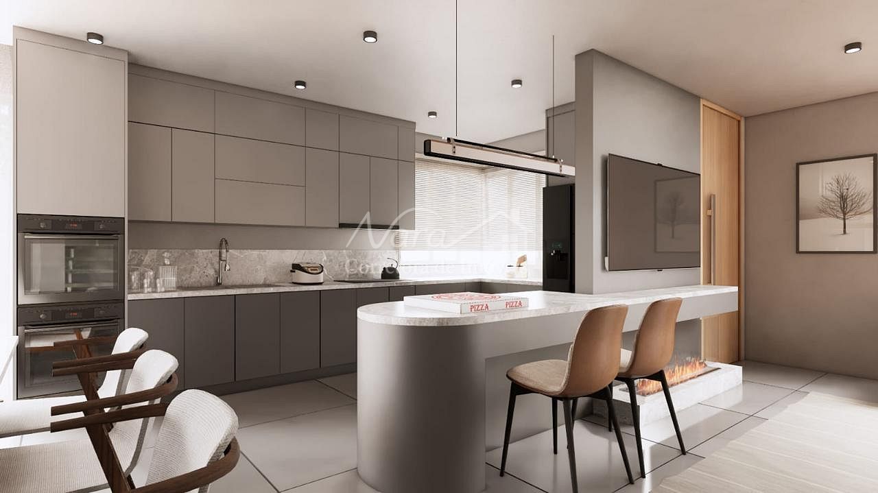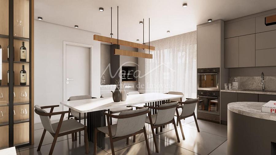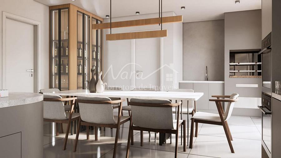 Sala de estar e jantar integrados com a cozinha;