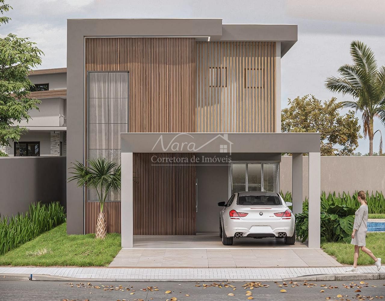 Garagem coberta para 2 carros lado a lado;