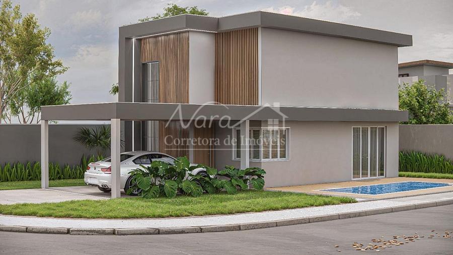 Aberturas em alumínio linha suprema, estrutura do telhado em ferro, piso porcelanato e vinílico, massa corrida nas paredes internas, jardinagem, toda murada e cercada.
