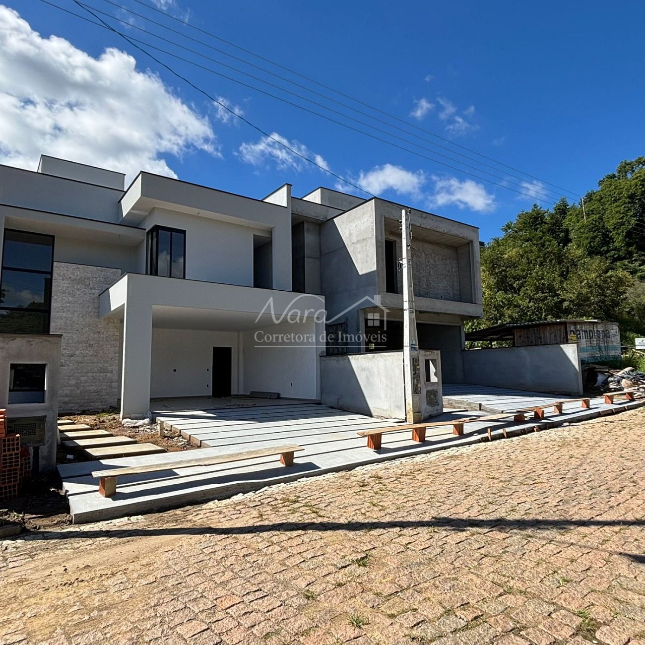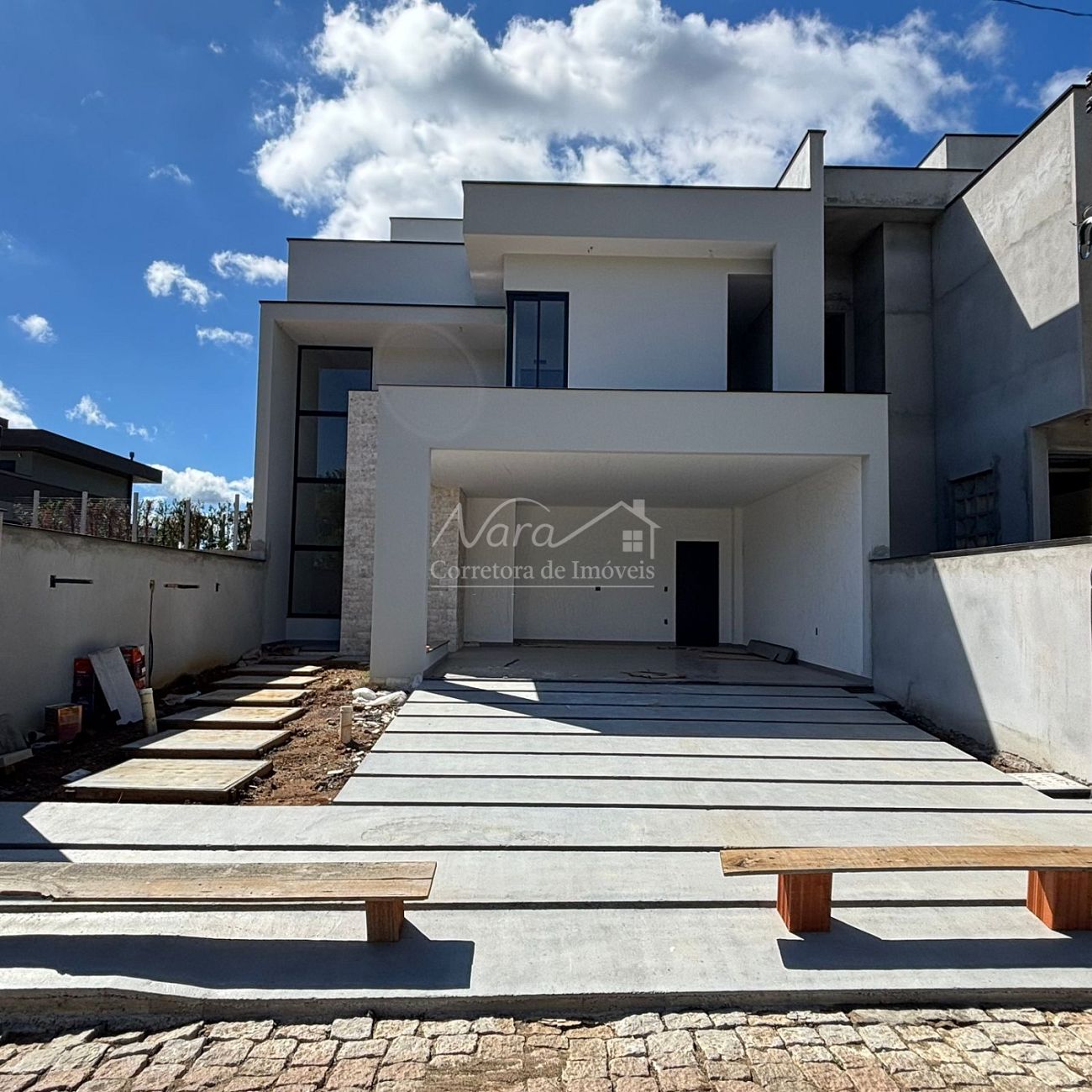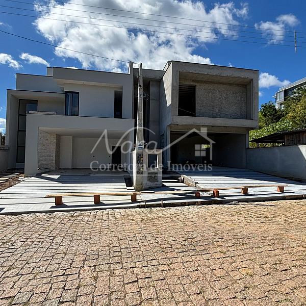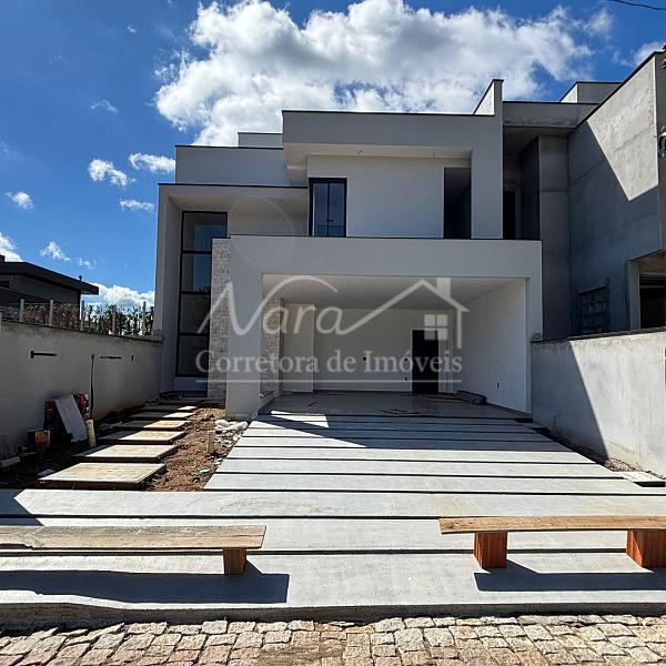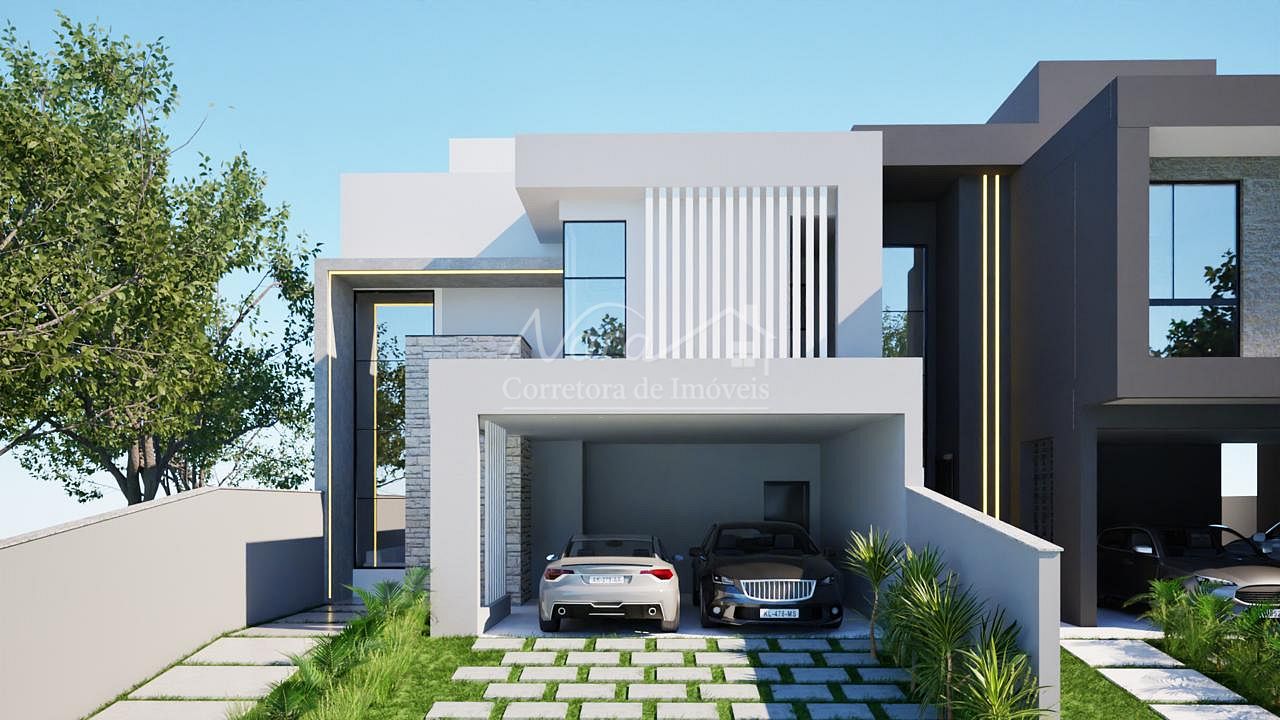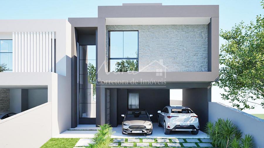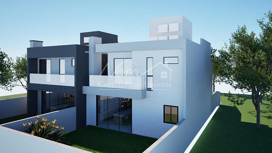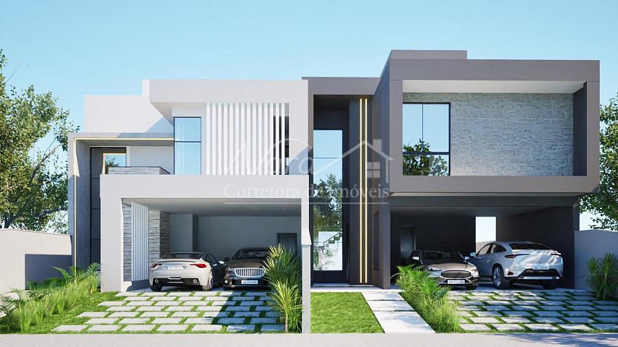 CASA GEMINADA 01 (esquerda) com área privativa de 200,00m², com 01 suíte com sacada + 02 demi-suítes, living c/ sala de estar e jantar, integrados c/ cozinha e churrasqueira, lavabo, área de serviço/lavação e 02 vagas cobertas.